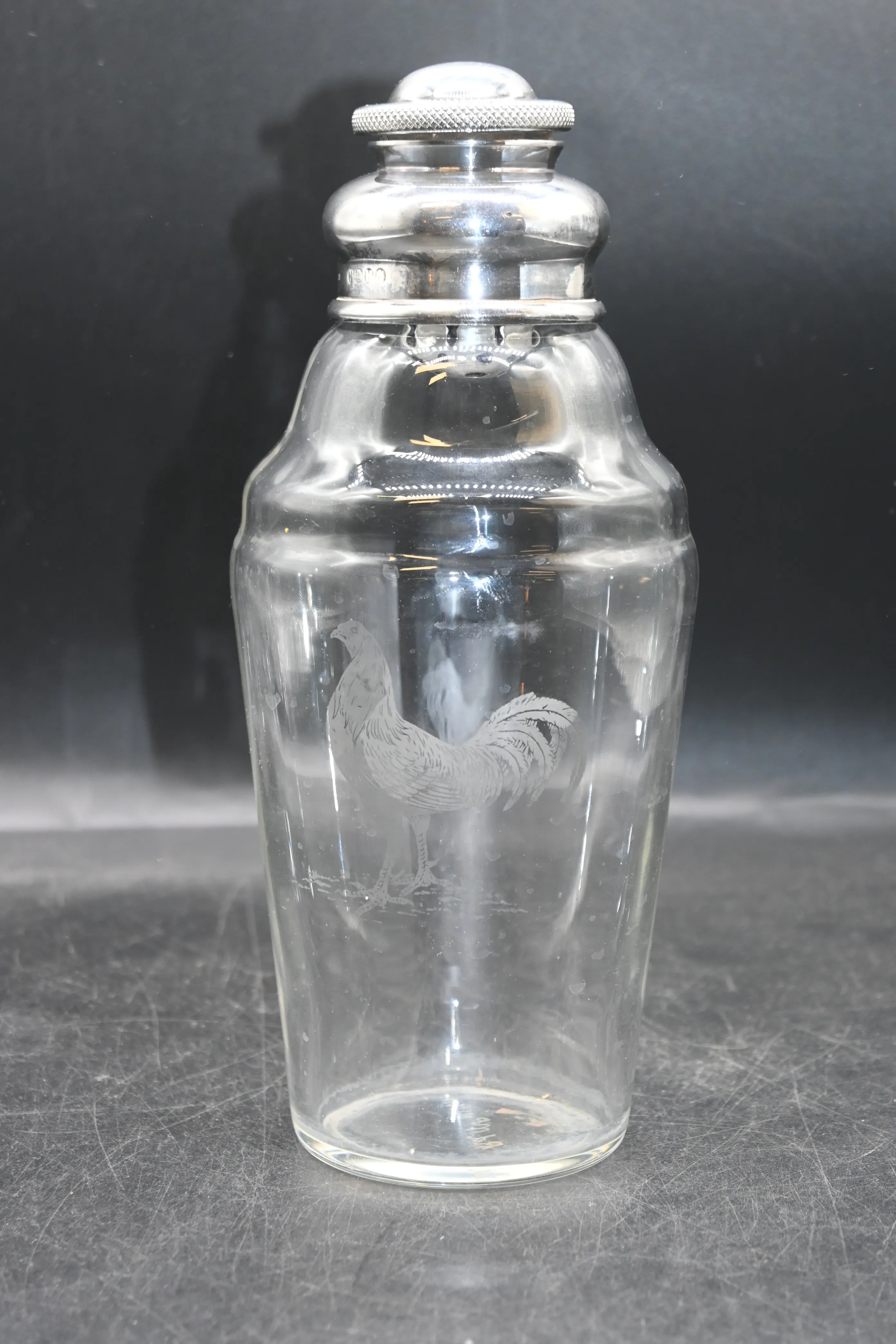 676. Schacker i glas med etsning bär signatur H.22.5cm