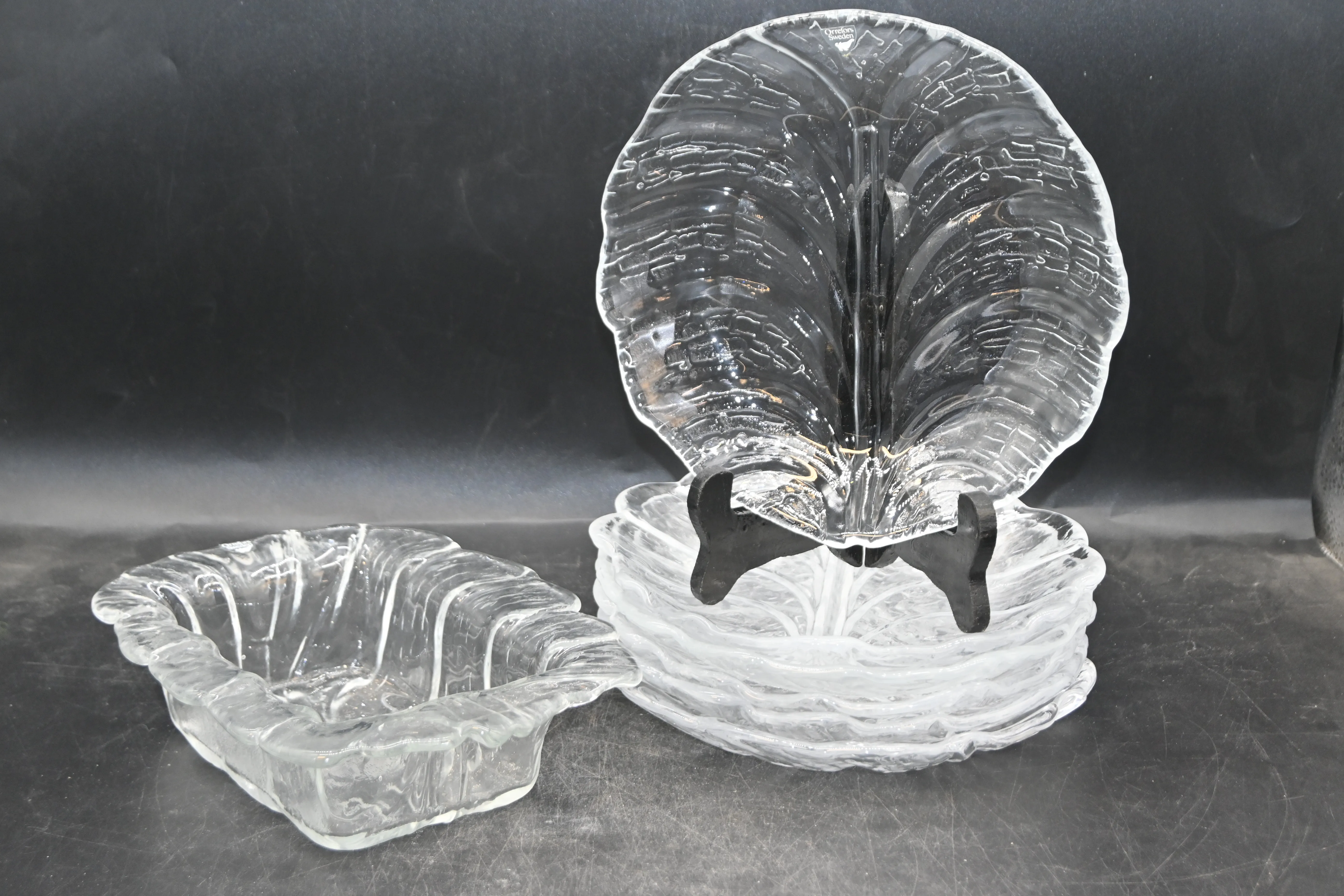 Skål + 6st assietter, Orrefors Eden