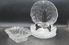 599. Parti figuriner i glas (nagg på 1, blomman lagad), äpple i konstglas