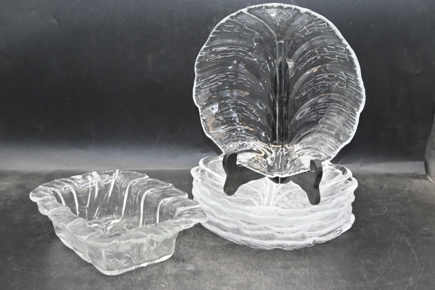 600. Skål + 6st assietter, Orrefors Eden