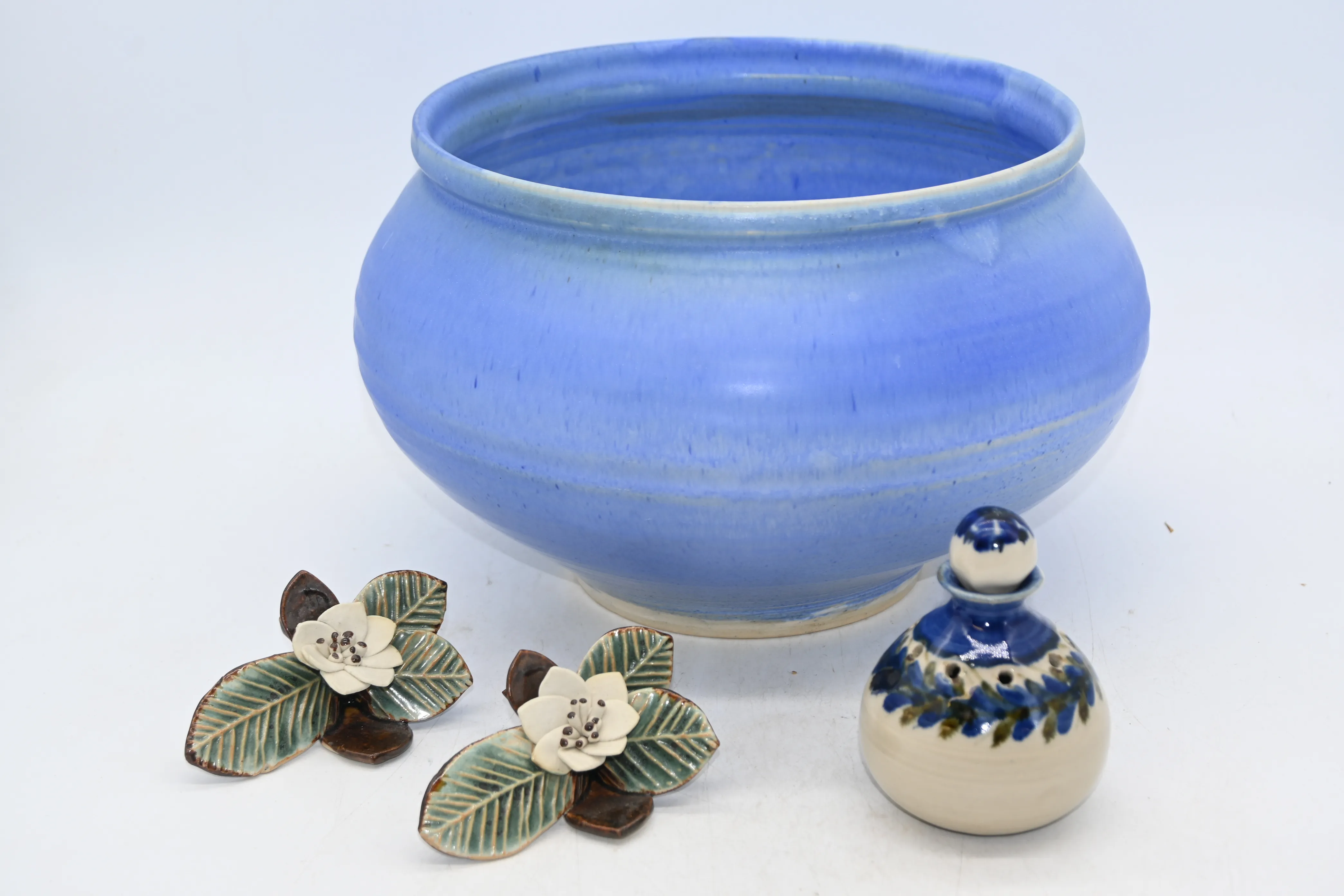 362. Skål D.25cm + dekorationer i keramik Solsieg