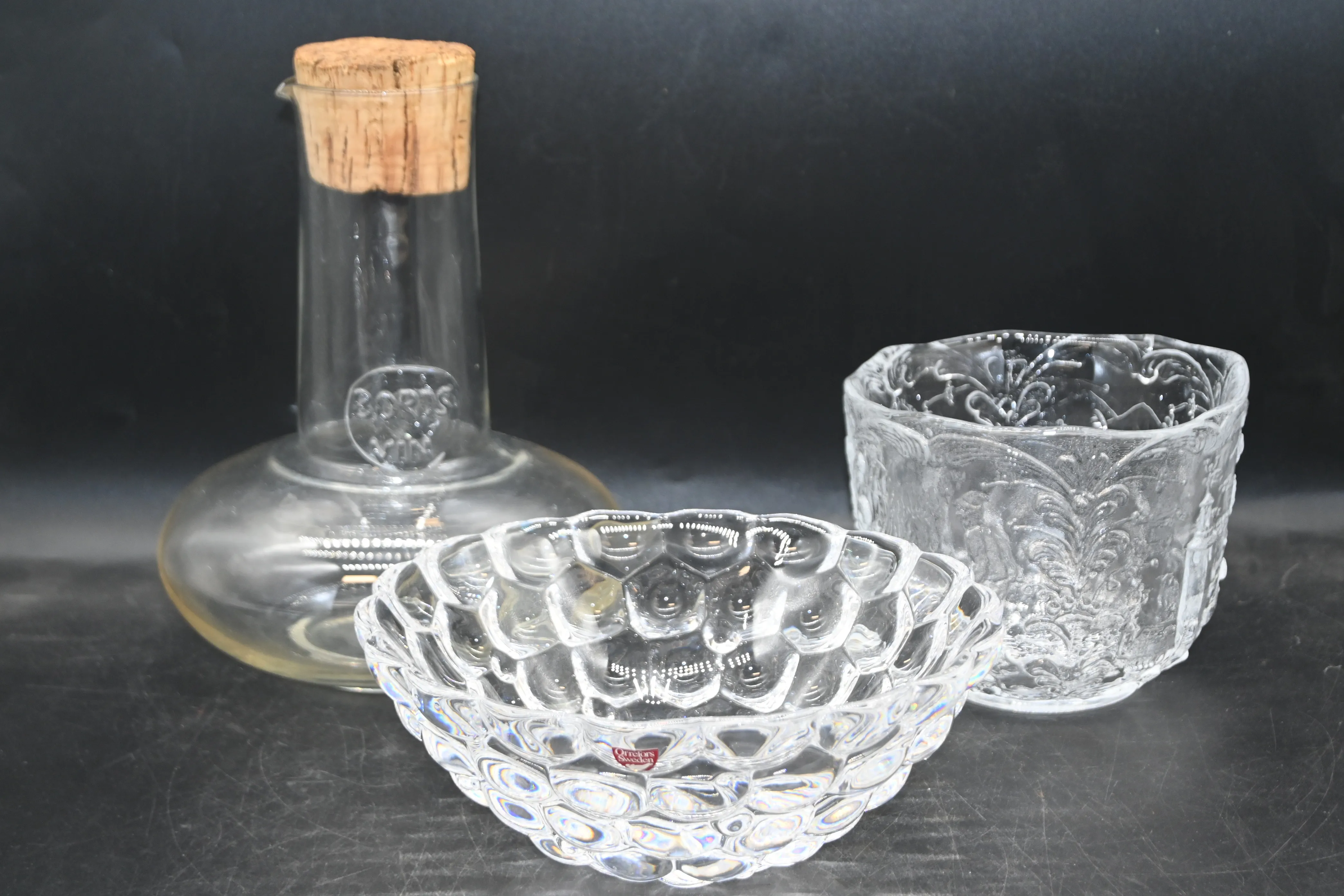Skålar 2st "Hallon" Orrefors, Kosta Boda "Rhapsody" + vinkaraff