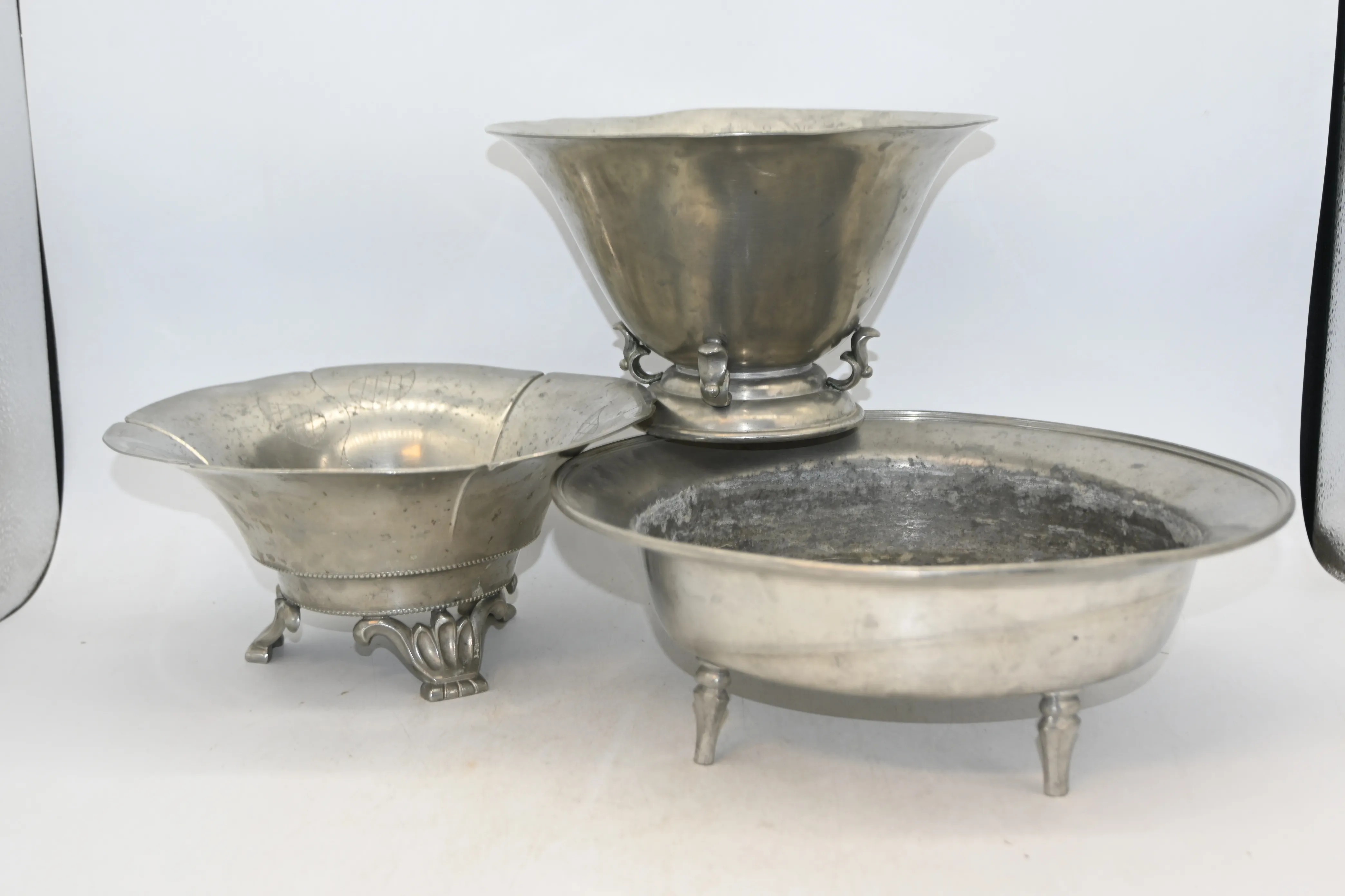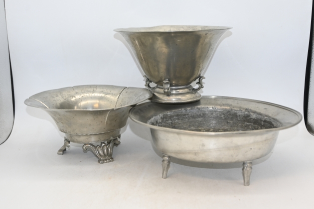 276. Skålar på fot 3st i tenn 1930.tal
