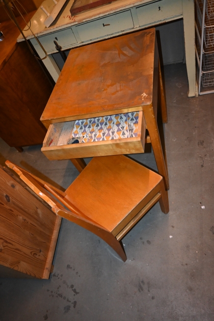 489. Skolbänk + Stol 1940/50.tal (åldersrelaterad slitage)