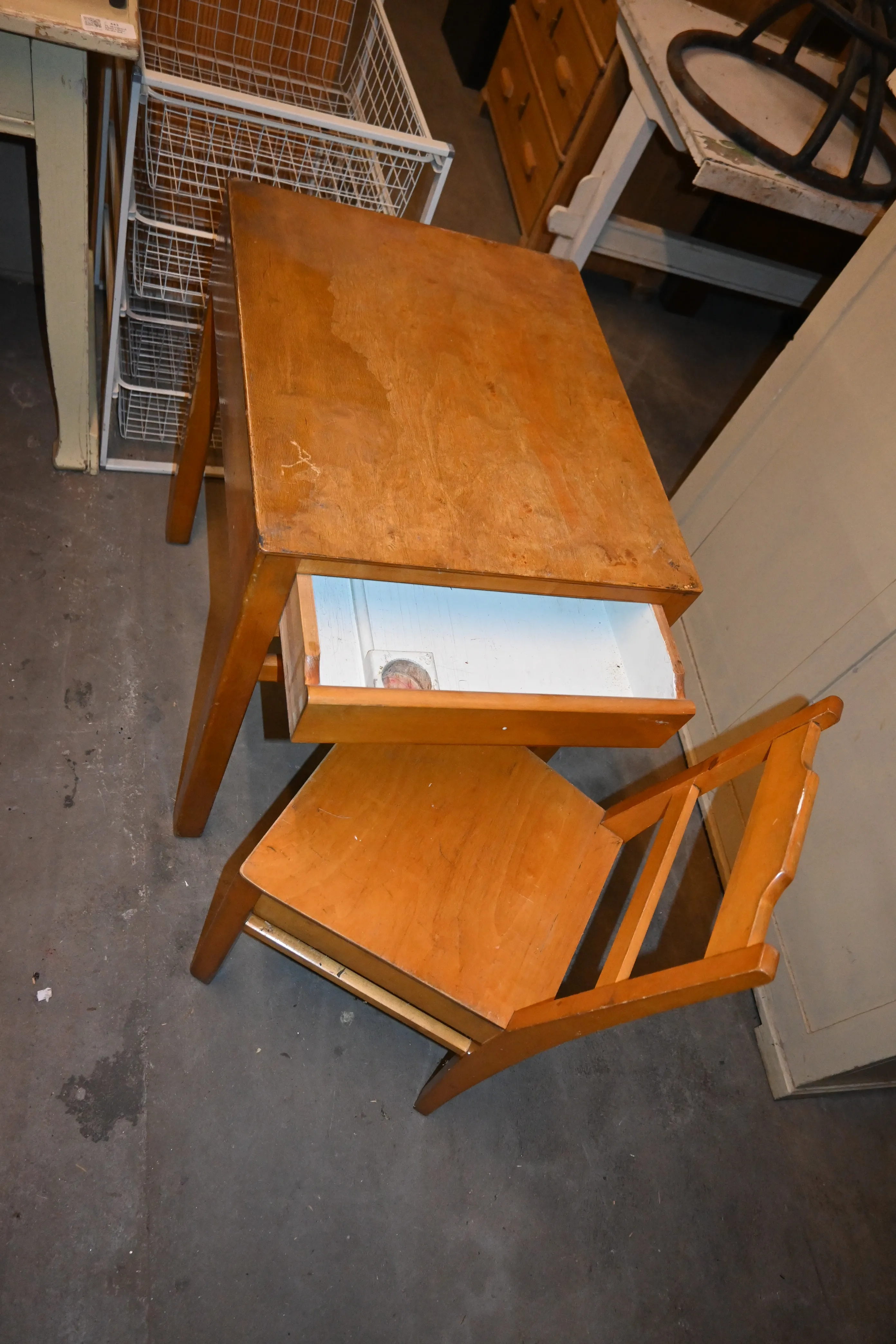 490. Skolbänk + Stol 1940/50.tal (åldersrelaterad slitage)