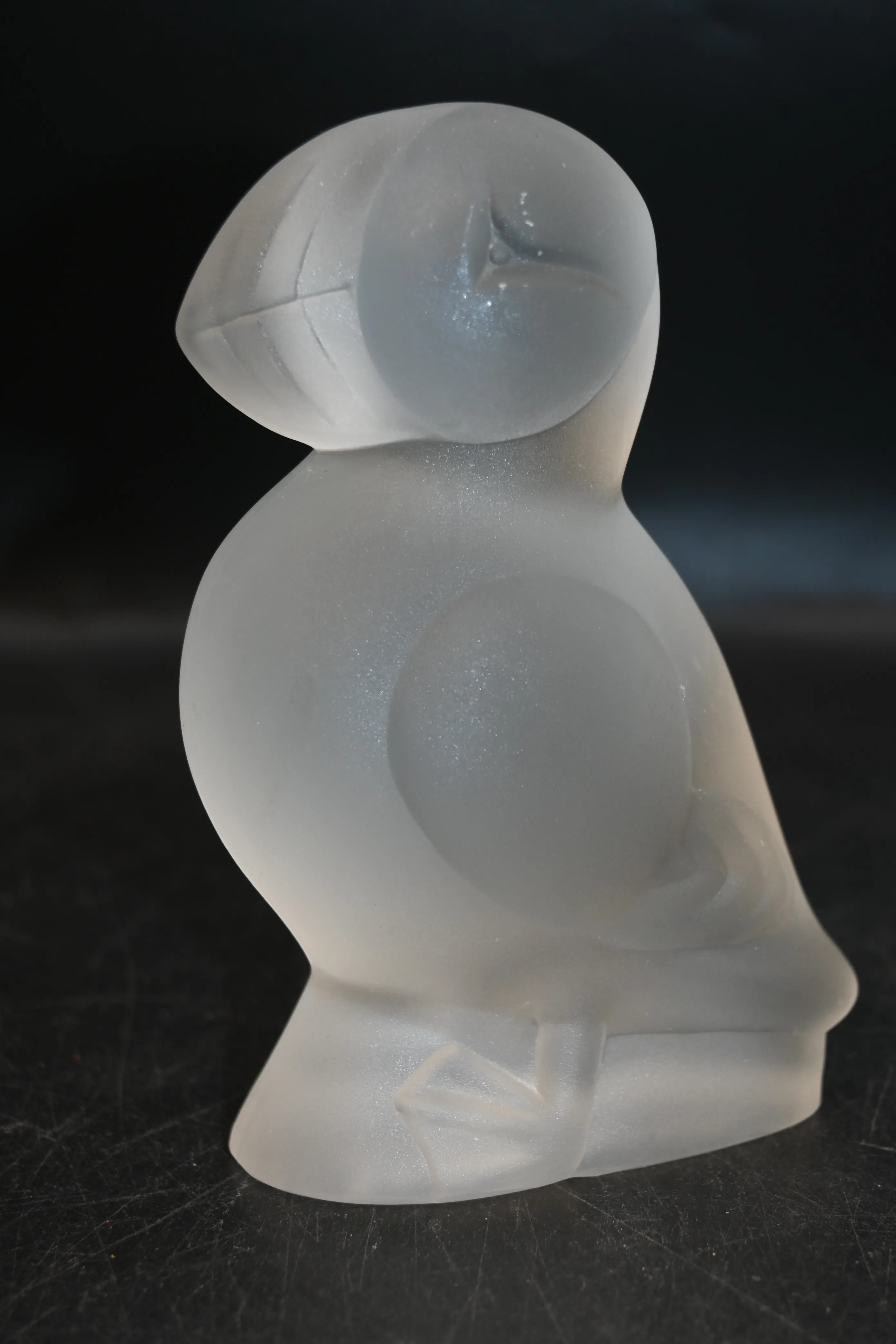 47. Skulptur i glas, Lunnefågel av Lisa Larsson för RSPB Svenskt glas Limited Edition 1975 H.12.5cm