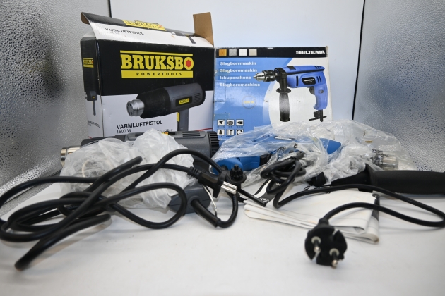 Slagborrmaskin Biltema+Varmluftspistol Bruksbo , Oanvända, nya i kartong