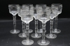 331. Snapsglas på fot i konstglas m slipning 9st H.13cm