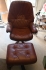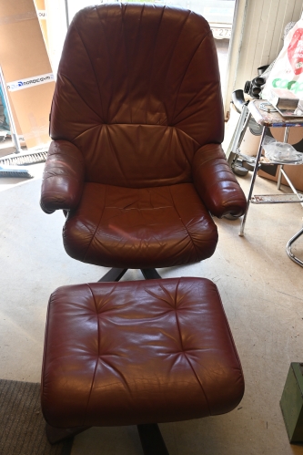 337. Snurrfåtölj med pall i skinn, Skalma Danmark (bruksslitage)