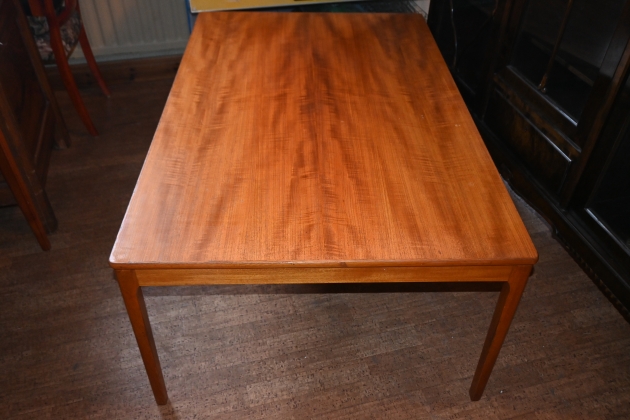 Soffbord i teak L.130cm B.85cm H.54cm (bruksslitage)