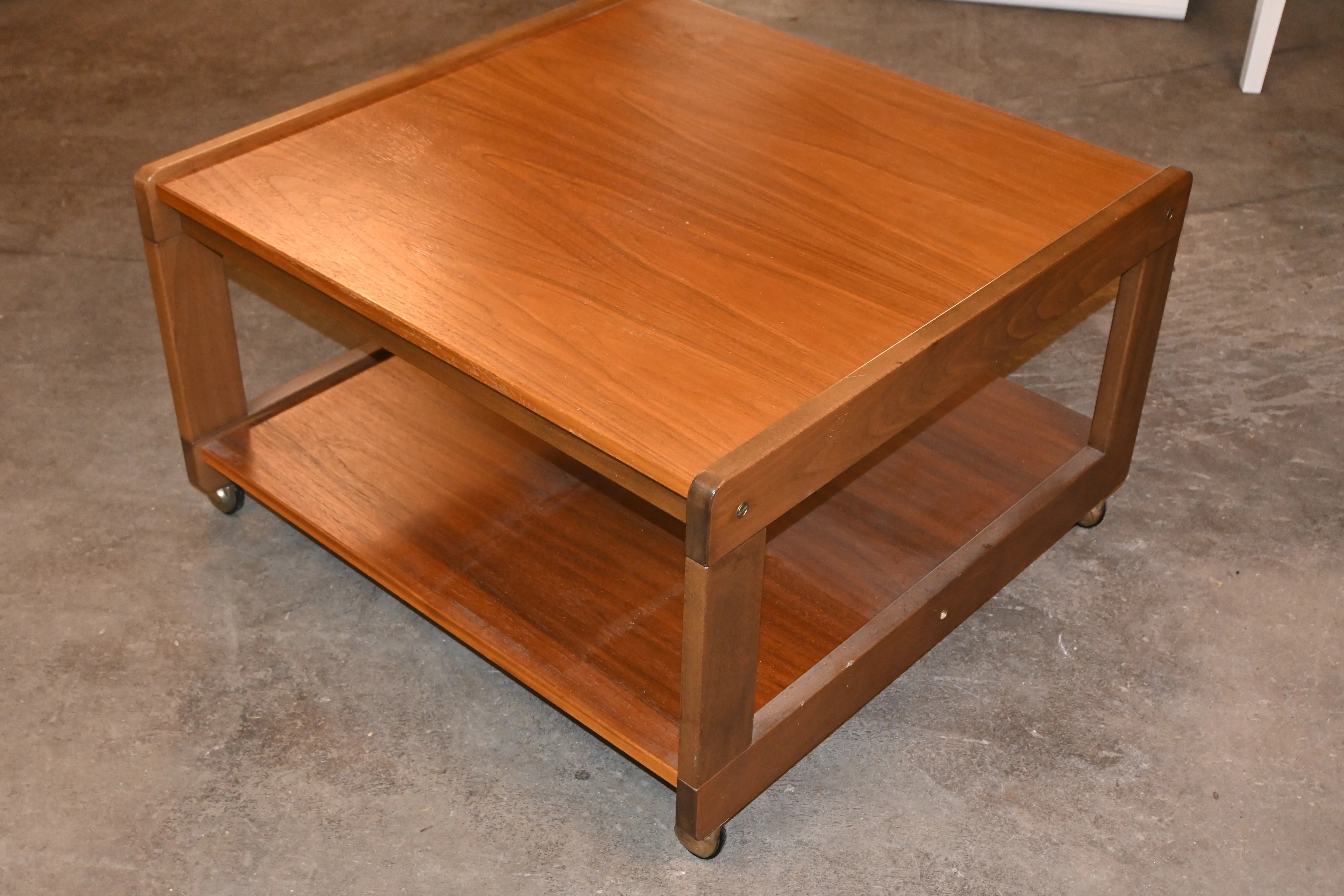 387. Soffbord på hjul i teak 1970.tal H.45cm B/L=75x75cm