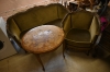 Soffgrupp 3del soffa, fåtölj badkarsmodell + bord 1900.talets mitt (hård slitage på bord, bruksslitage)