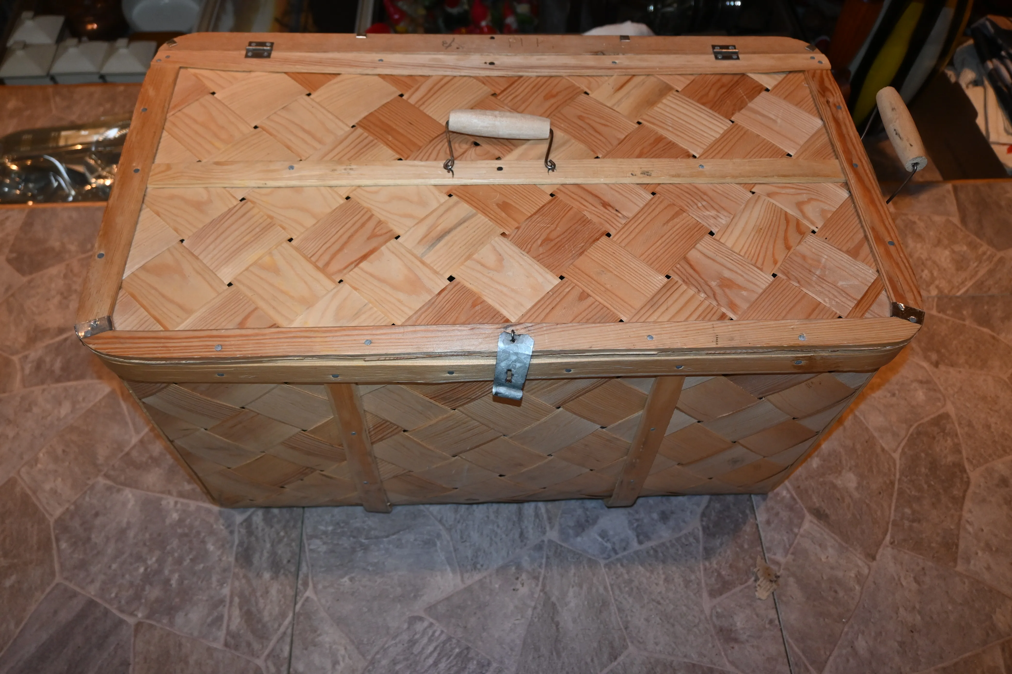 319. Spånkorg med div innehåll
