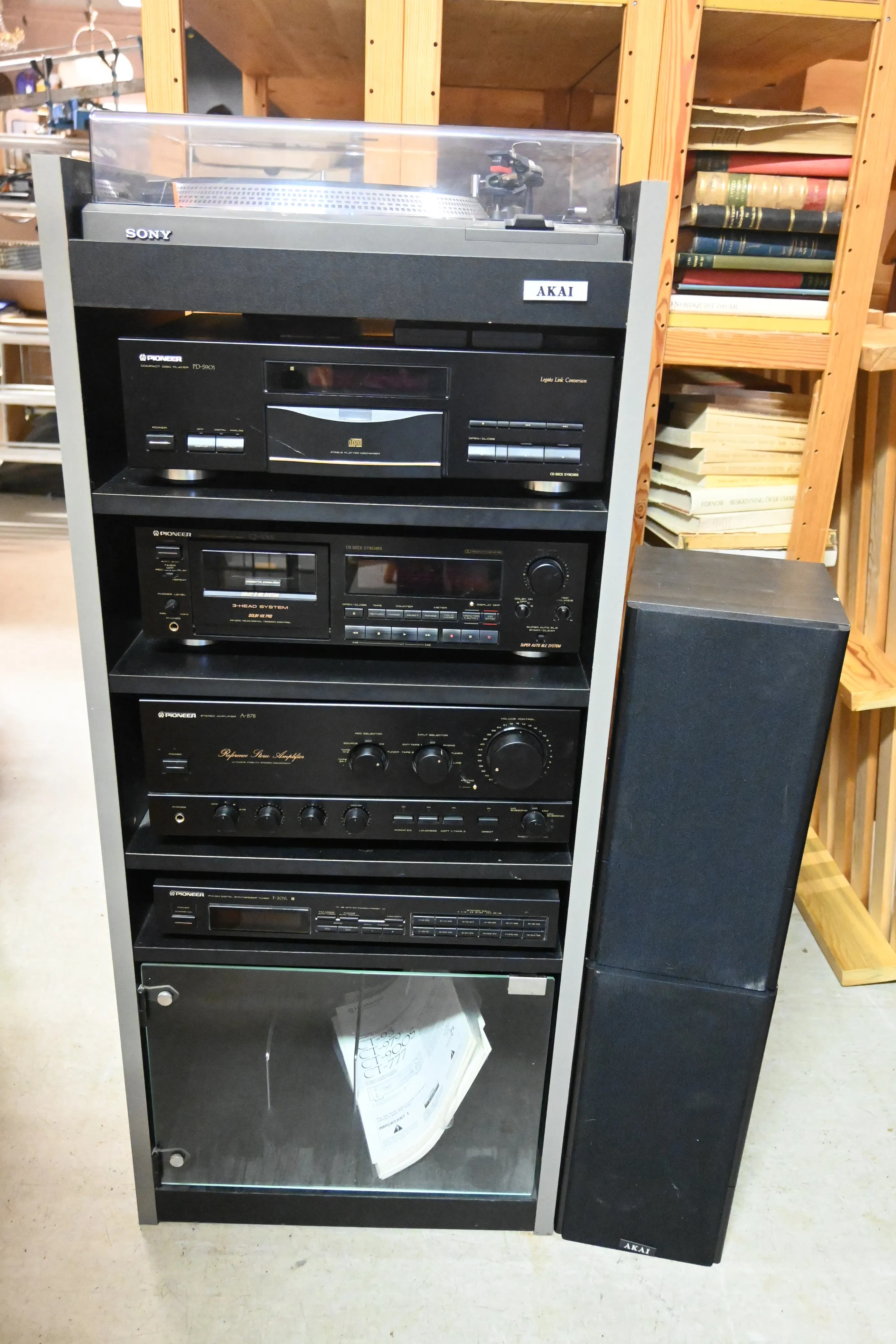 758. Stapelstereo Pioneer Cd PD-S901, kasset CT-900S, stereo A-878, Tuner F-201L, skivspelare Sony + högtalare (fungerar)
