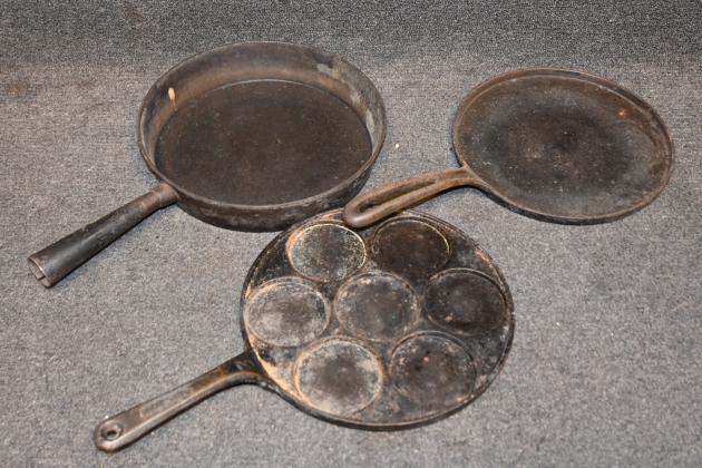 Stekpanna & plättlagg "Husqvarna", pannkakspanna "Kockuns No.1" i gjutjärn D.26cm