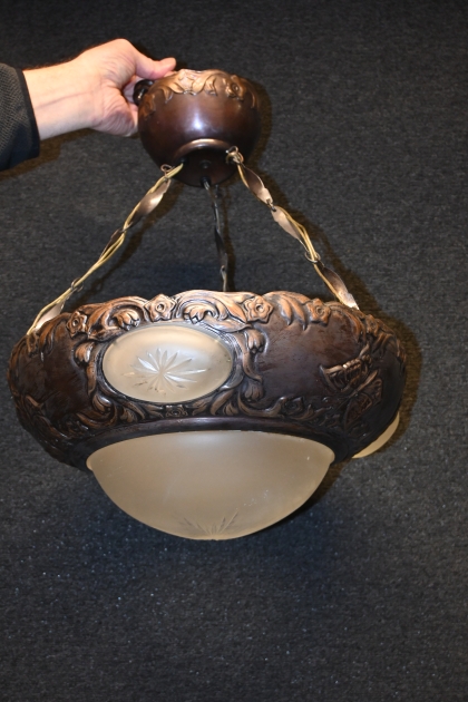 764. Taklampa i koppar jugend D.39cm