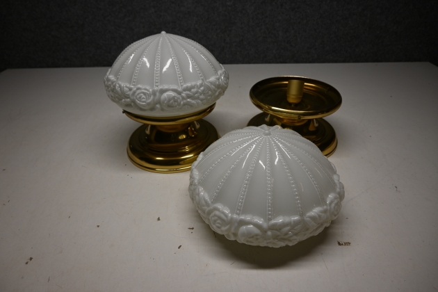 185. Taklampor i mässing & glas 1par D.27cm (behöver översyn)