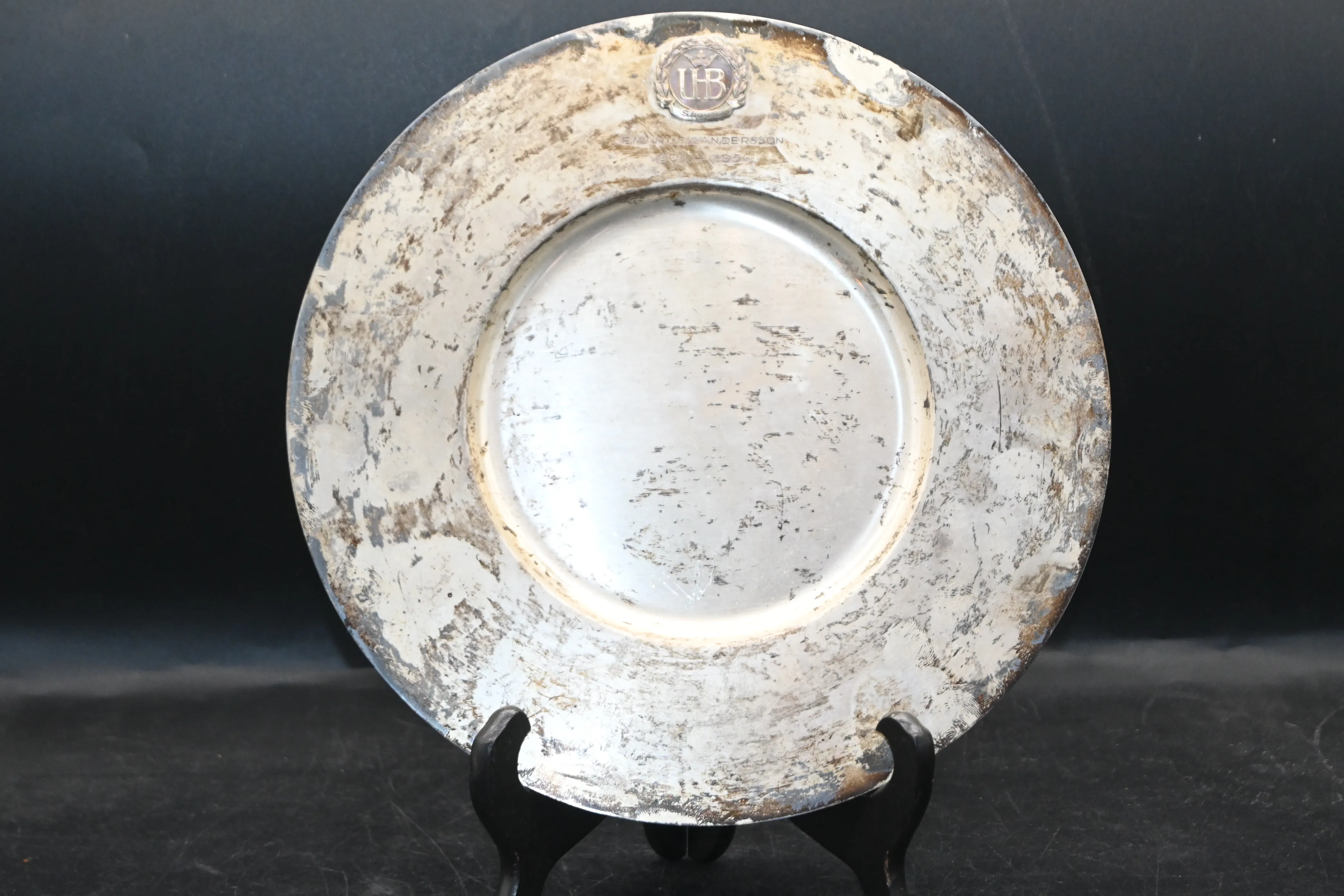 73. Tallrik "UHB" Sterling silver D9 vikt.500.9gr D.25cm