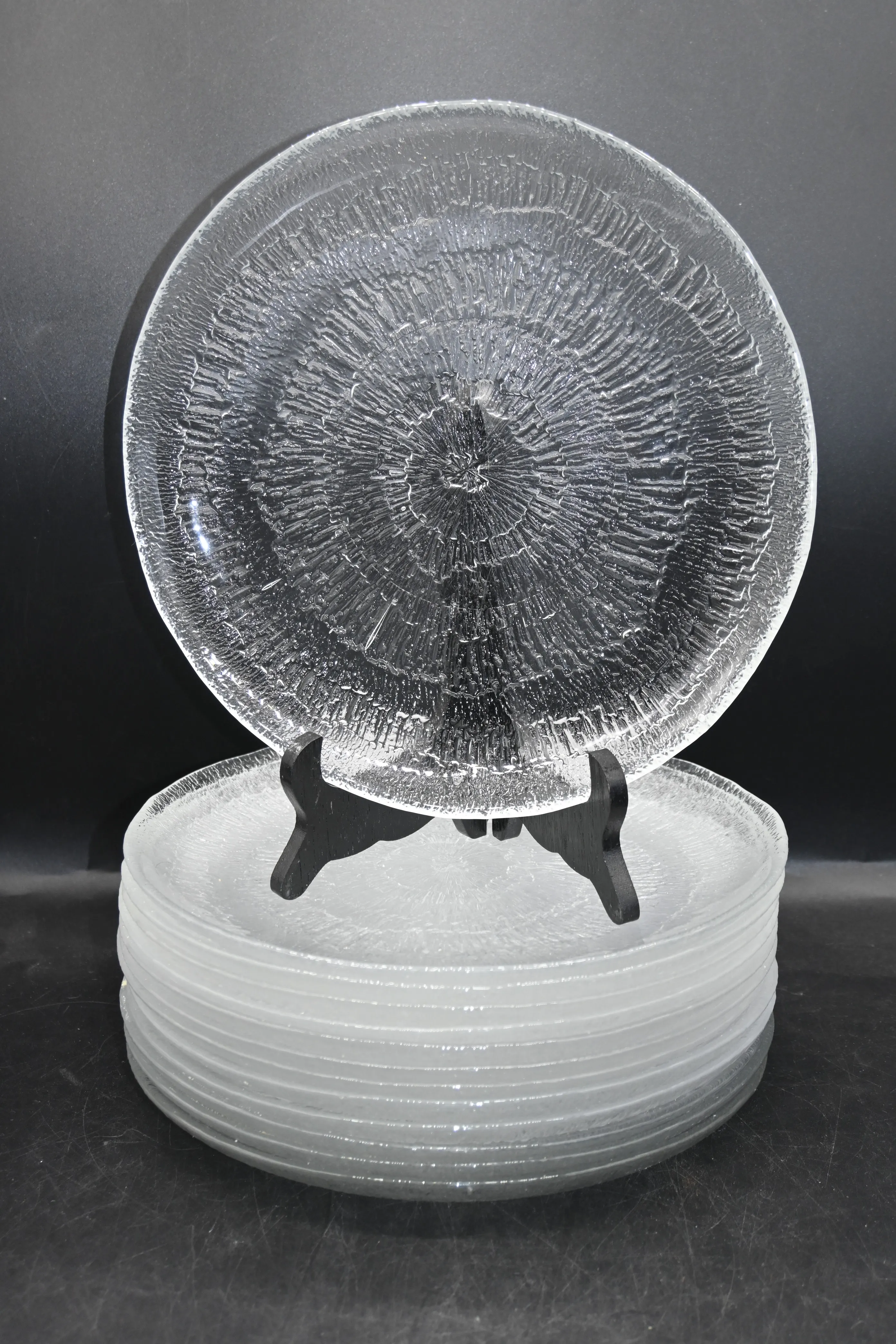 220. Tallrikar i glas 13st, Iittala "Solaris" av Tapio Wirkkala D:25cm