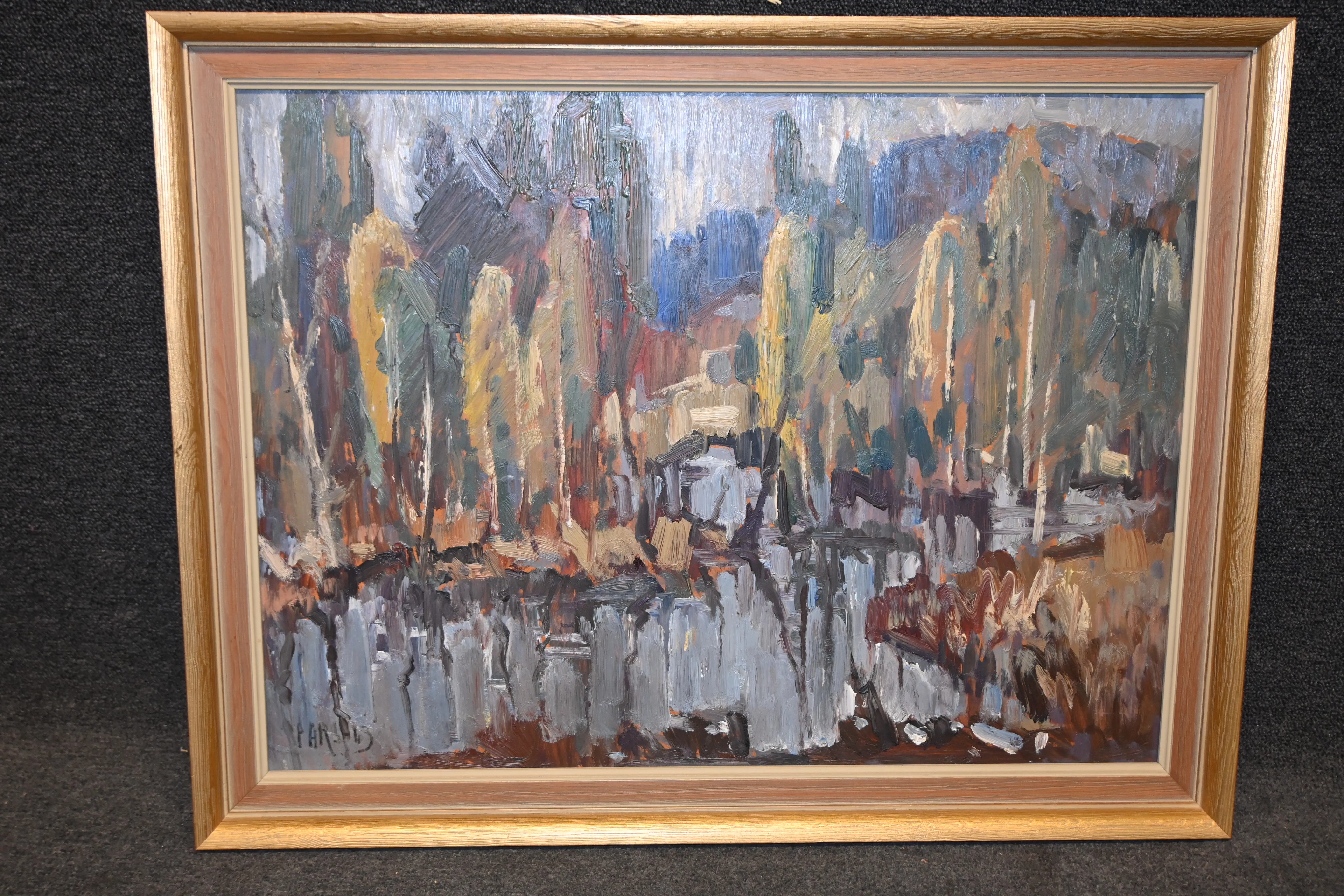 649. Tavla, Opd av Rut Flodqvist motiv Kolmila Finnskogen mmr.48x57cm