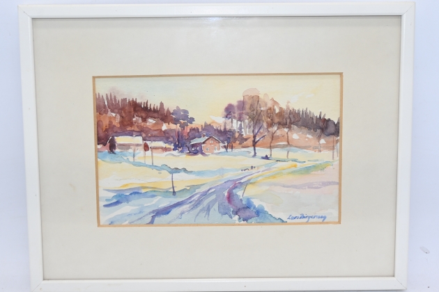 Tavla, Akvarell av Lars Birgersson (Ekshärad) motiv Vinter i Romboland mmr.23x30cm