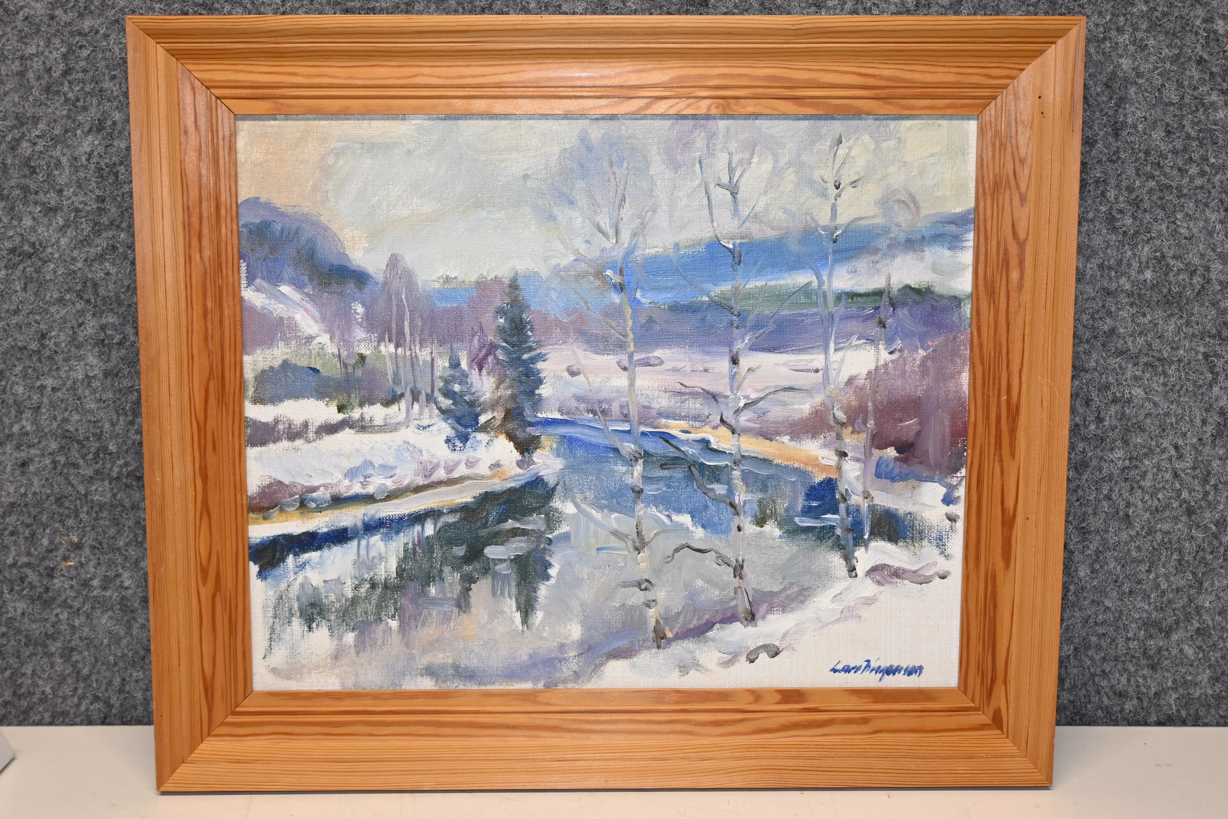 645. Tavla. Opd av Lars Birgersson (Ekshärad) vinterdag i Ännarbolsmon mmr.42x50cm