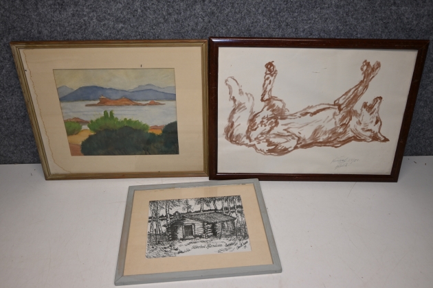 Tavle 3st, Akvarell Tor Ivar, Knöppel 114/150, litografi Säterbod Kärnåsen