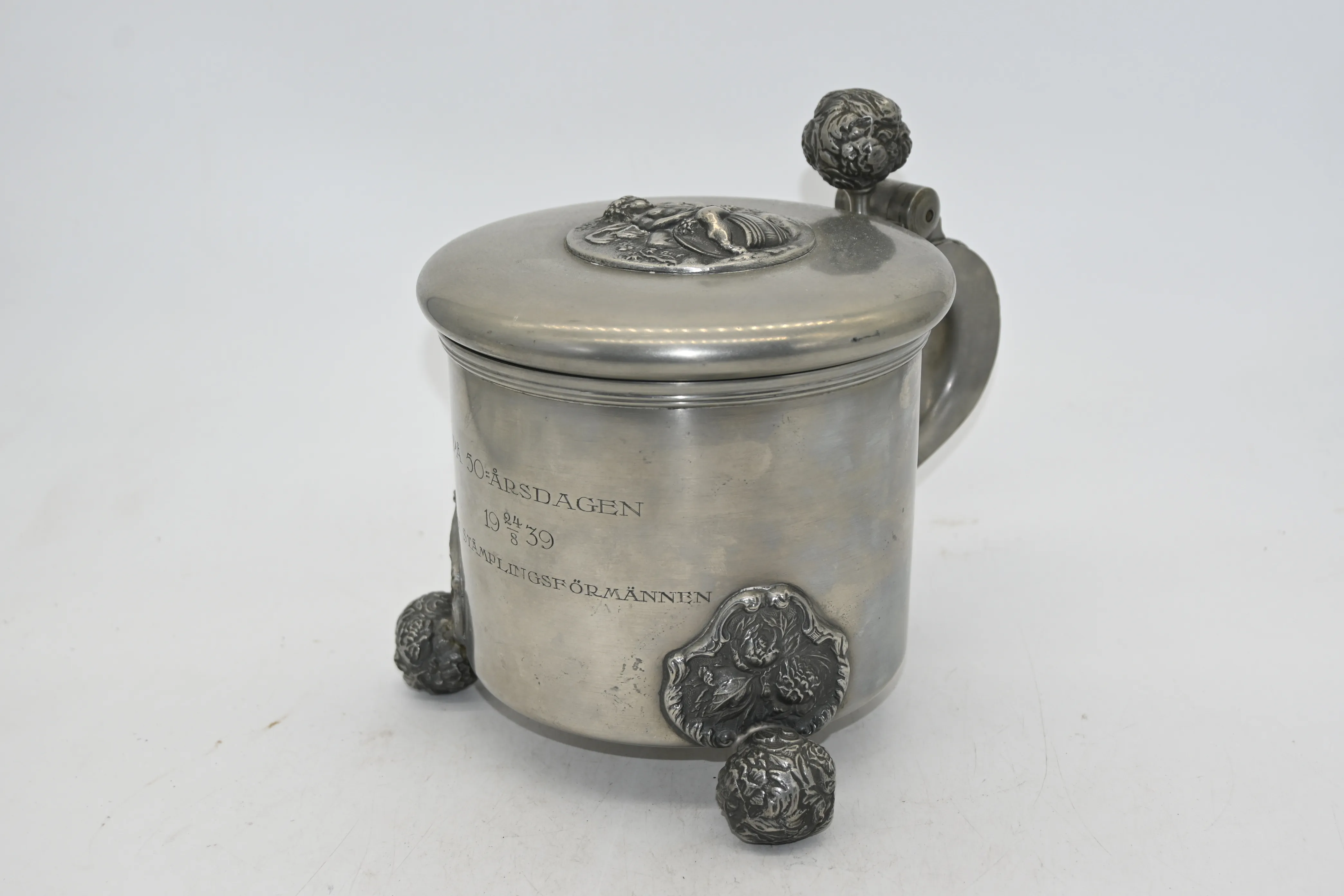 Tennstop bär inskription dat 1939 H.18cm