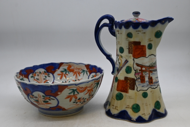 605. Tillbringare 1900.tal (spräckt) + Skål sekelskifte 18/1900.tal Asiatisk