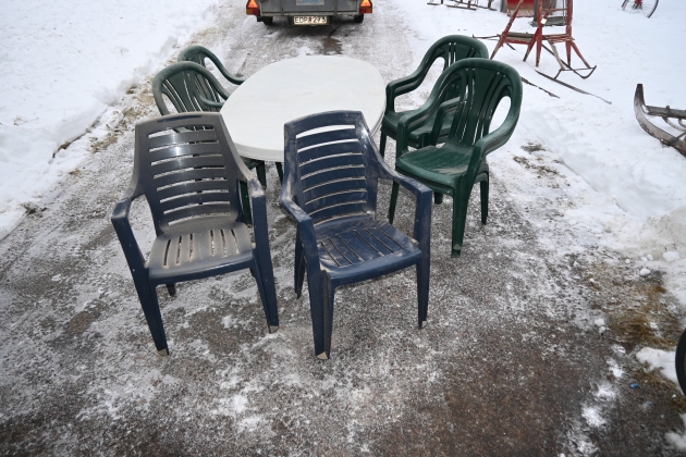 Trädgårdsmöbel i plast, bord + 8st stolar (Slitage)