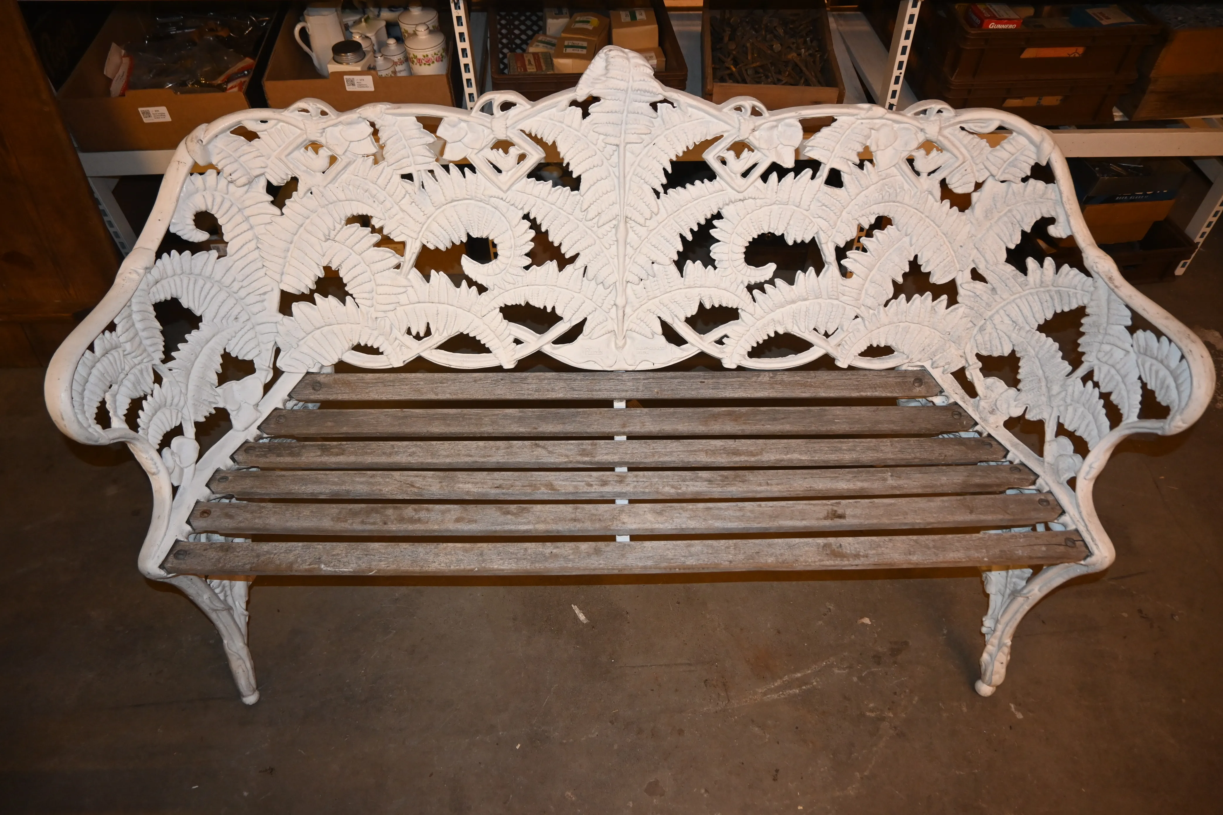 371. Trädgårdssoffa gjuten aluminium. "Ormbunke" Riab Ruda 1900.talats andra hälft L.142cm H.86cm