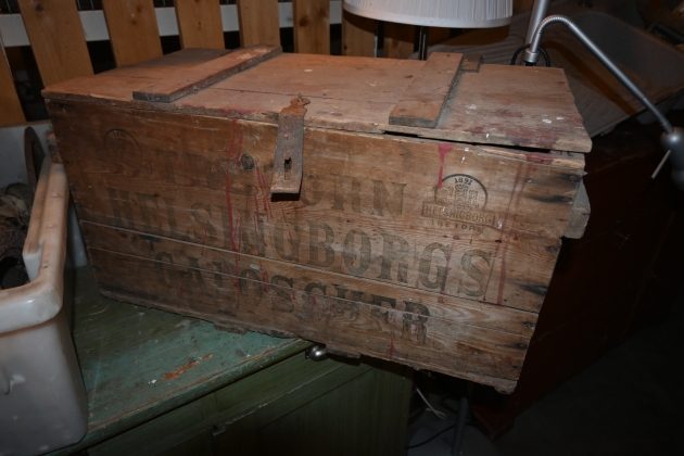 495. Trälåda med lock galoscher L.68cm B.37cm