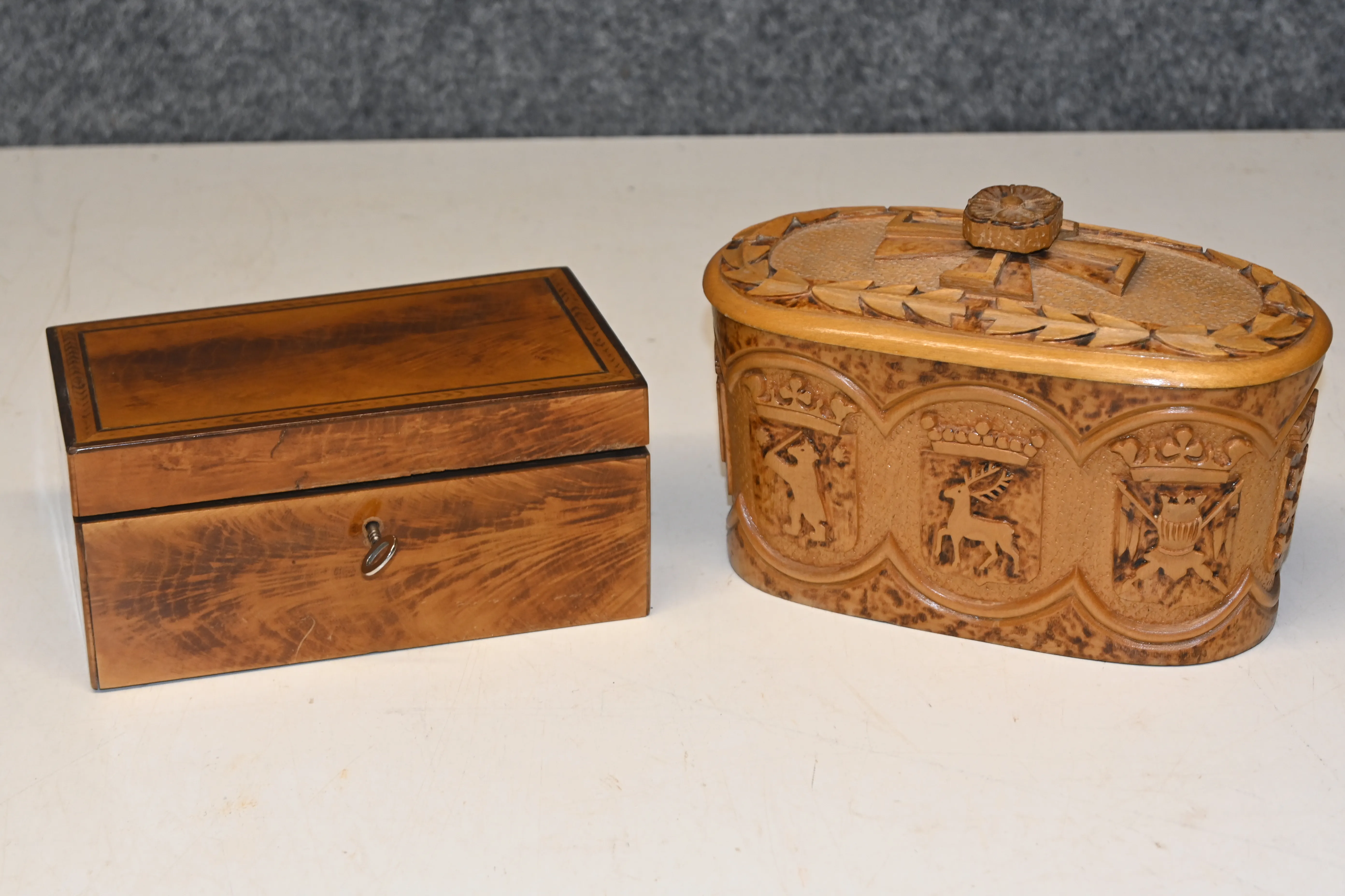 425. Träskrin 2st bl a Handgjord 1943 "Krivi" L.17.5cm & 20cm