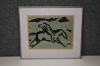 Träsnitt eget tryck 2/8 "Rytter i blått" Finn Jacobsen -84 mmr,48x56cm