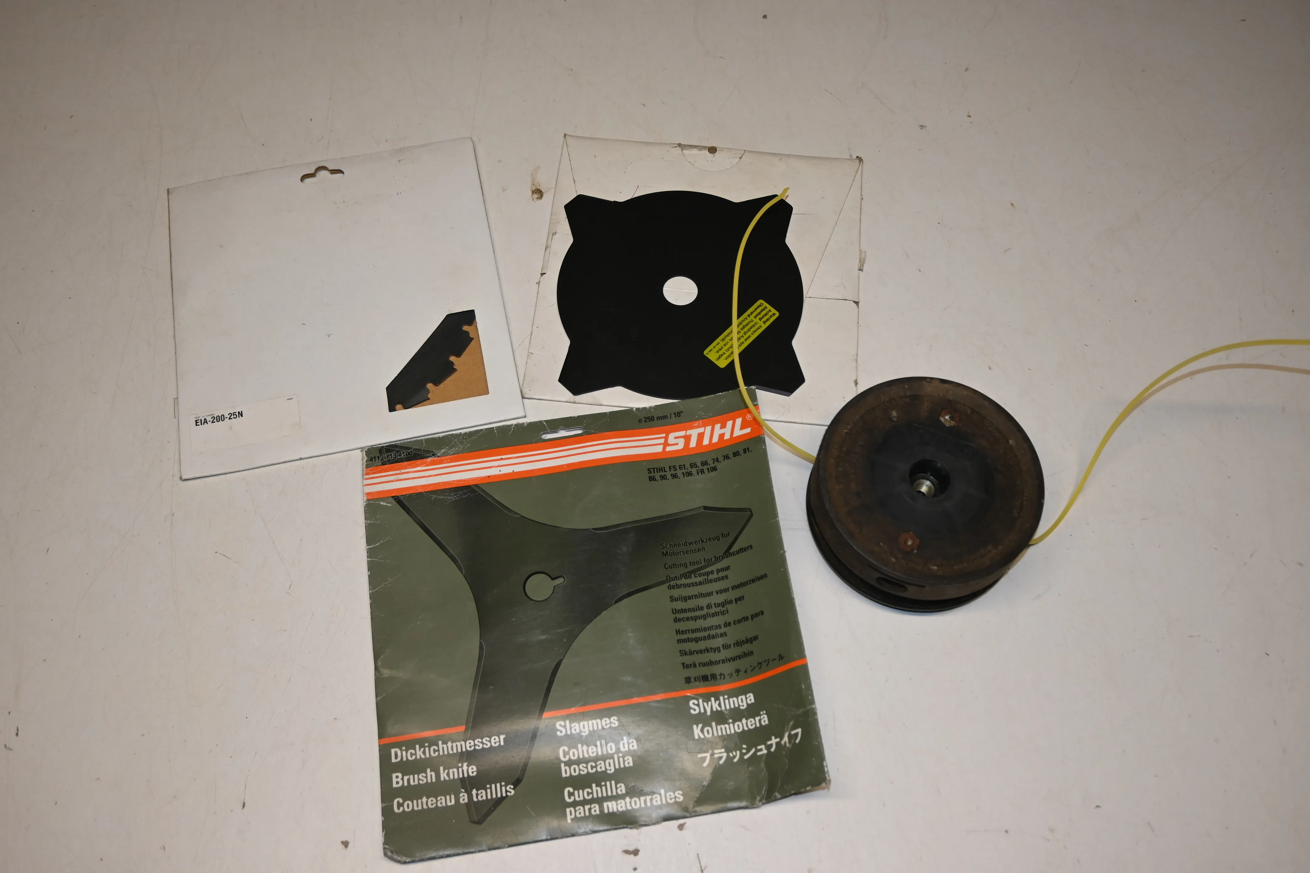 345. Trimmerhuvud Stihl, slyklinga 250mm, röjklingor 2st