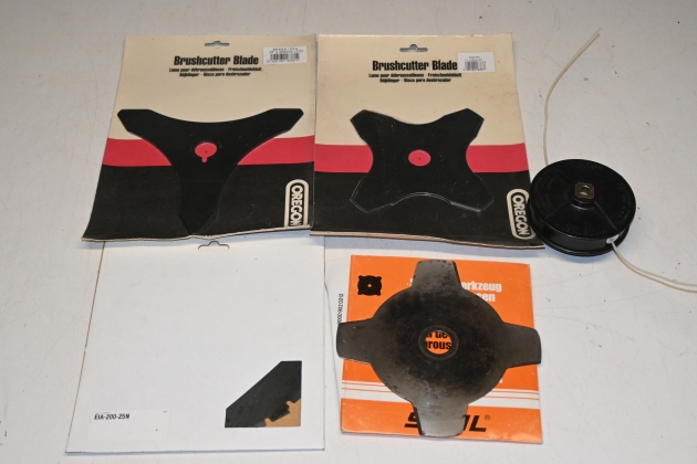 340. Trimmerhuvud till Stihl + 1 rulle träd, sågklingor 200m 2st, slyklinga 250mm Stihl,