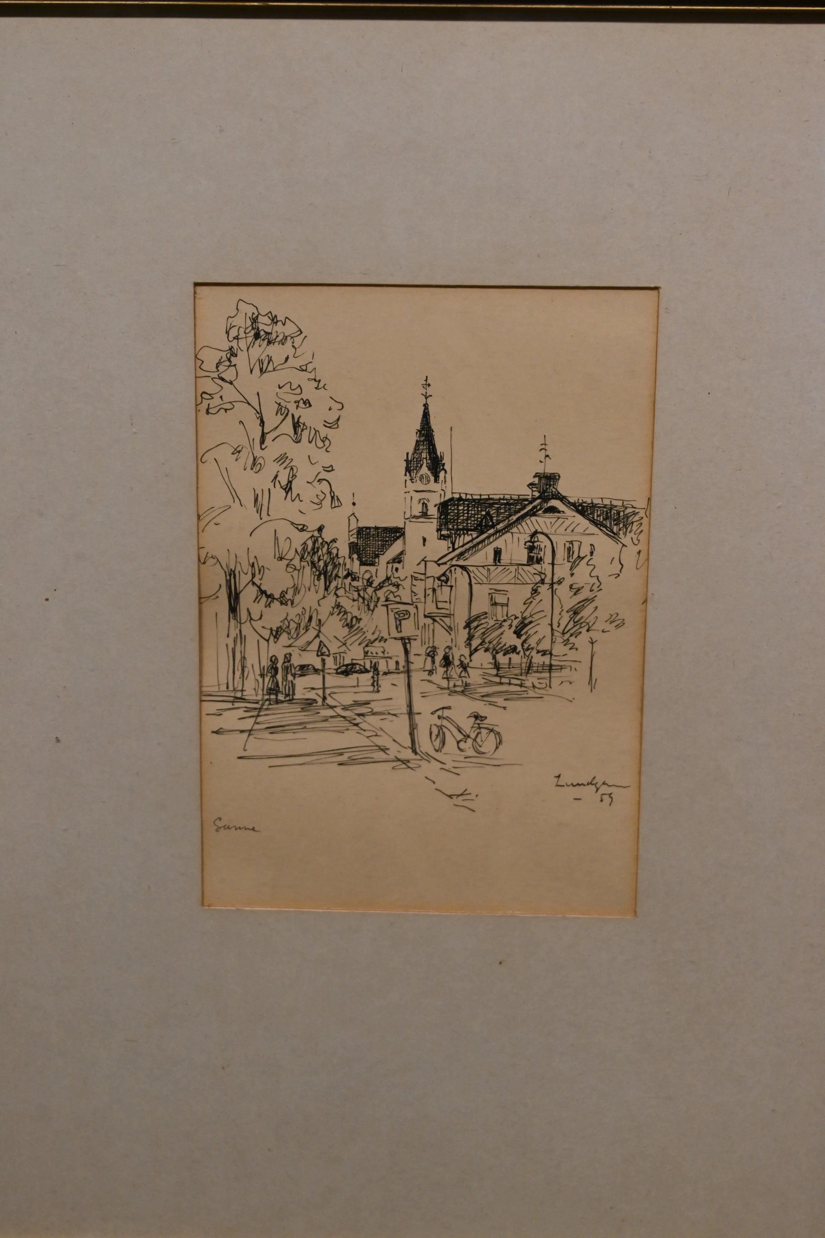 Tusch teckning sign Lundberg-59 "Storgatan Sunne" mmr.32x42cm