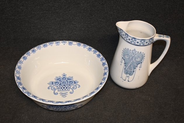 709. Tvättfat+tvättkanna Rörstrand Korg