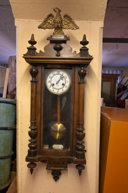Väggklocka med JungHans urverk sekelsk 18/1900.tal H.105cm B.37cm(fungerar, 1 list i dörr saknas)