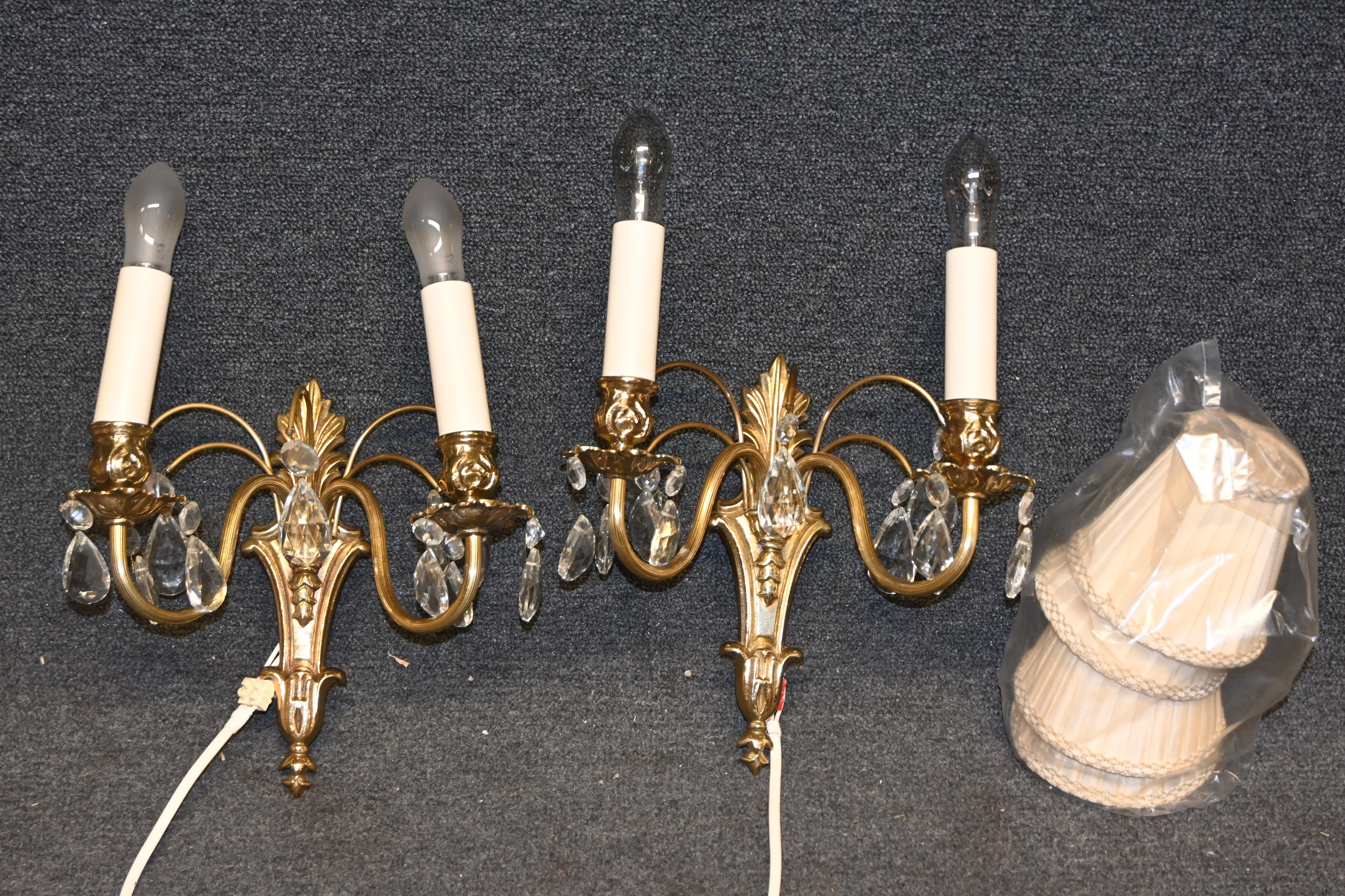 522. Vägglampetter 1par förgylld metall H.34cm