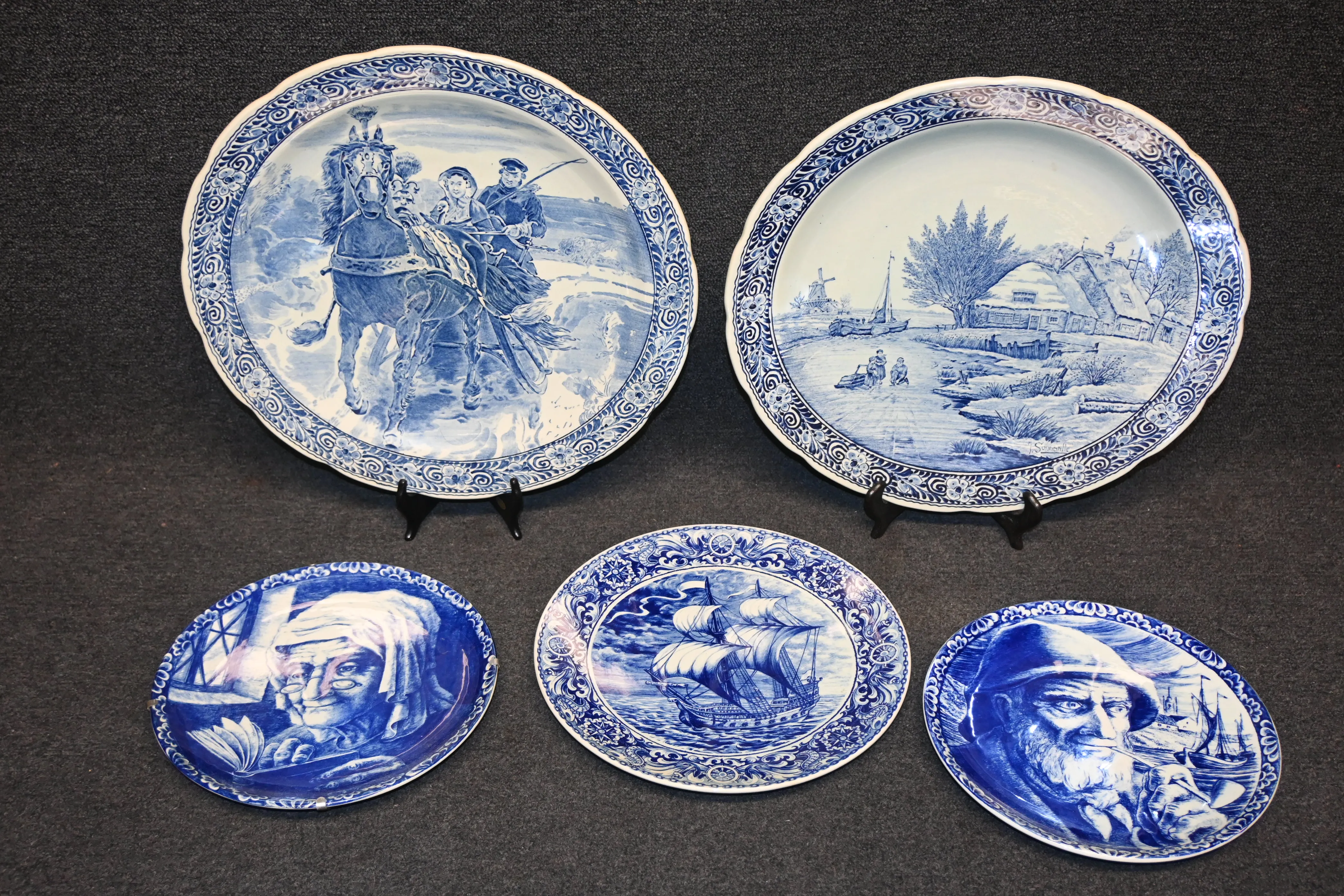 Väggtallrikar 4st, Boch Belgium "Delfts" D.25 till 39cm