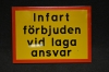 Vägskylt i plåt, infart förbjuden vid laga ansvar 56x42cm (oanvänd)