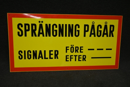677. Vägskylt i plast, Sprängning pågår 90x45cm