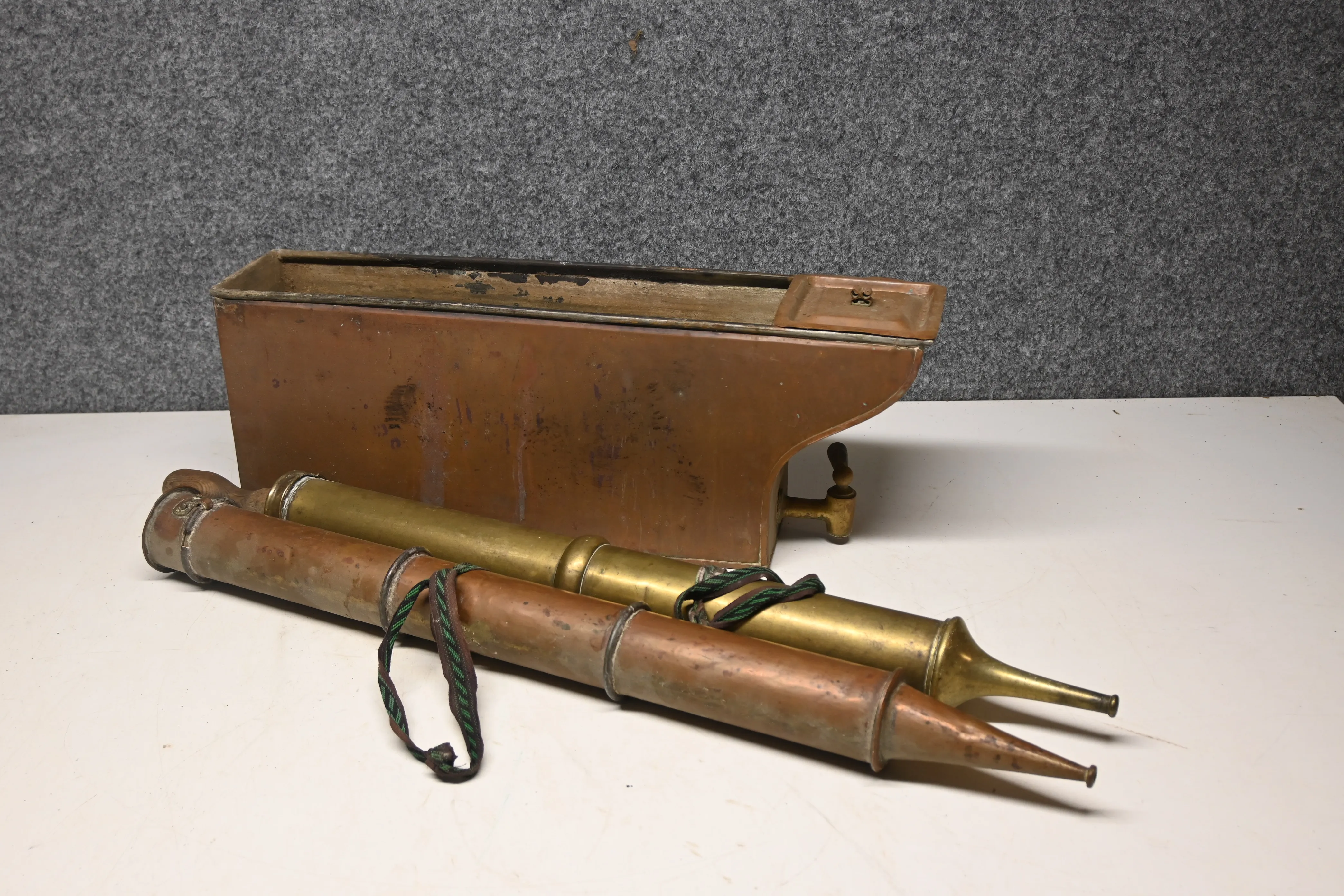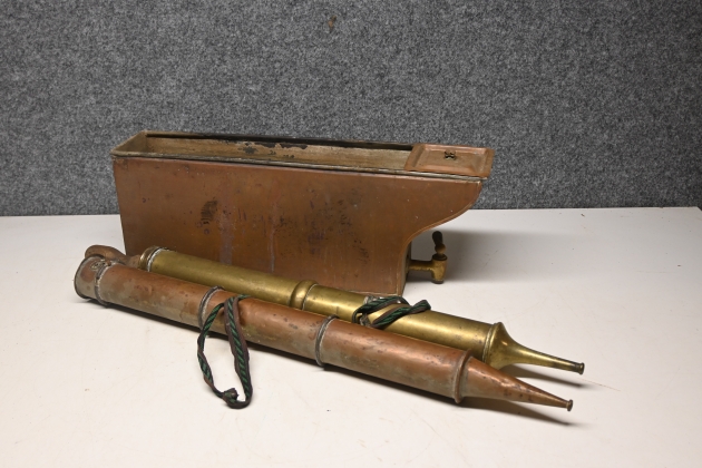 171. Varmvattenberedare, brandsprutor i koppar & mässing