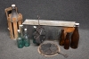 545. Varmvattenberedare i koppar + div dricksflaskor, våffeljärn