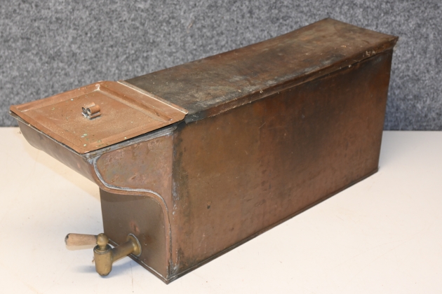 66. Varmvattenberedare i koppar till vedspis L.61cm