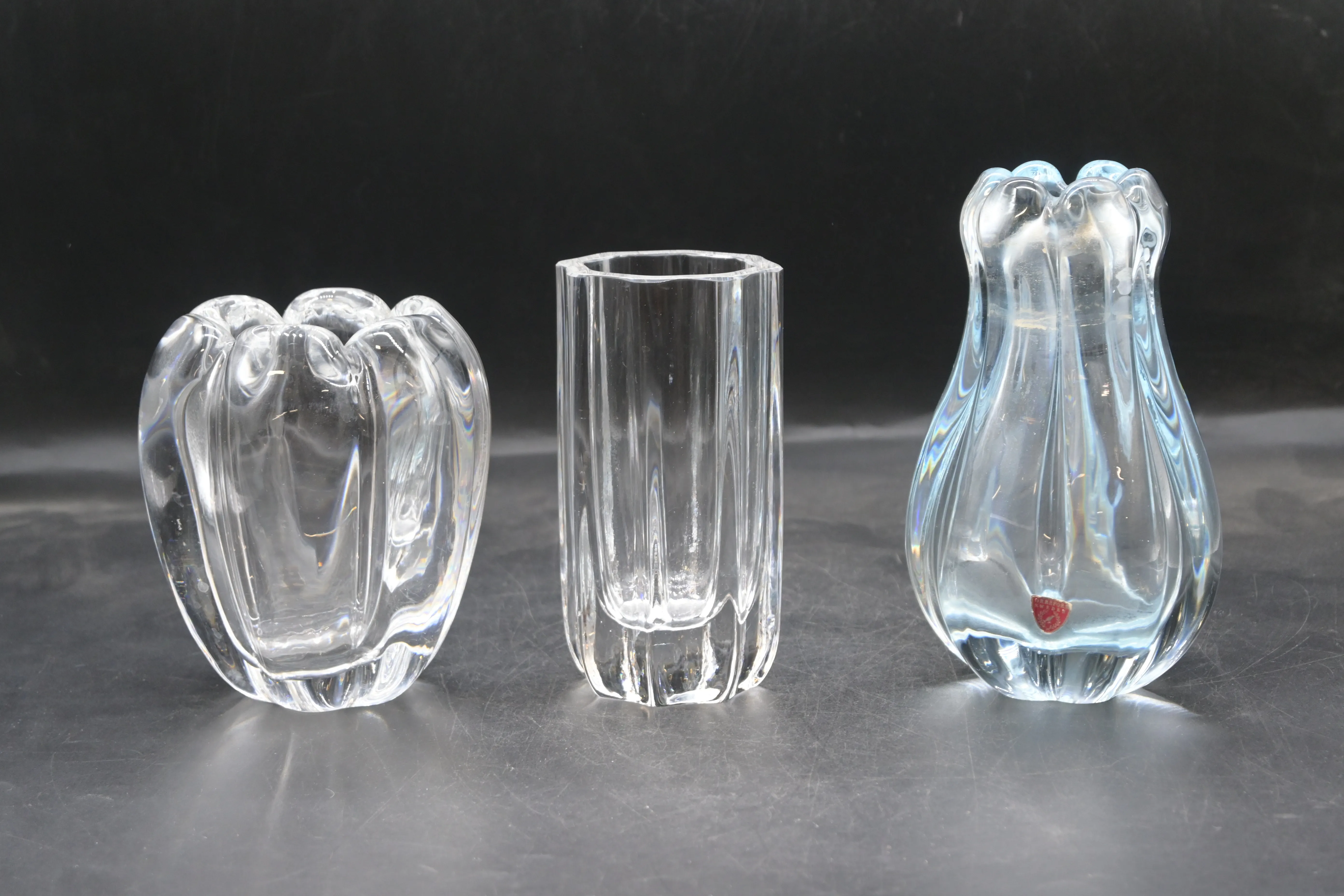 Vaser 3st, Orrefors H.12.5cm till 16.5cm