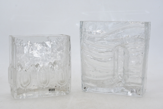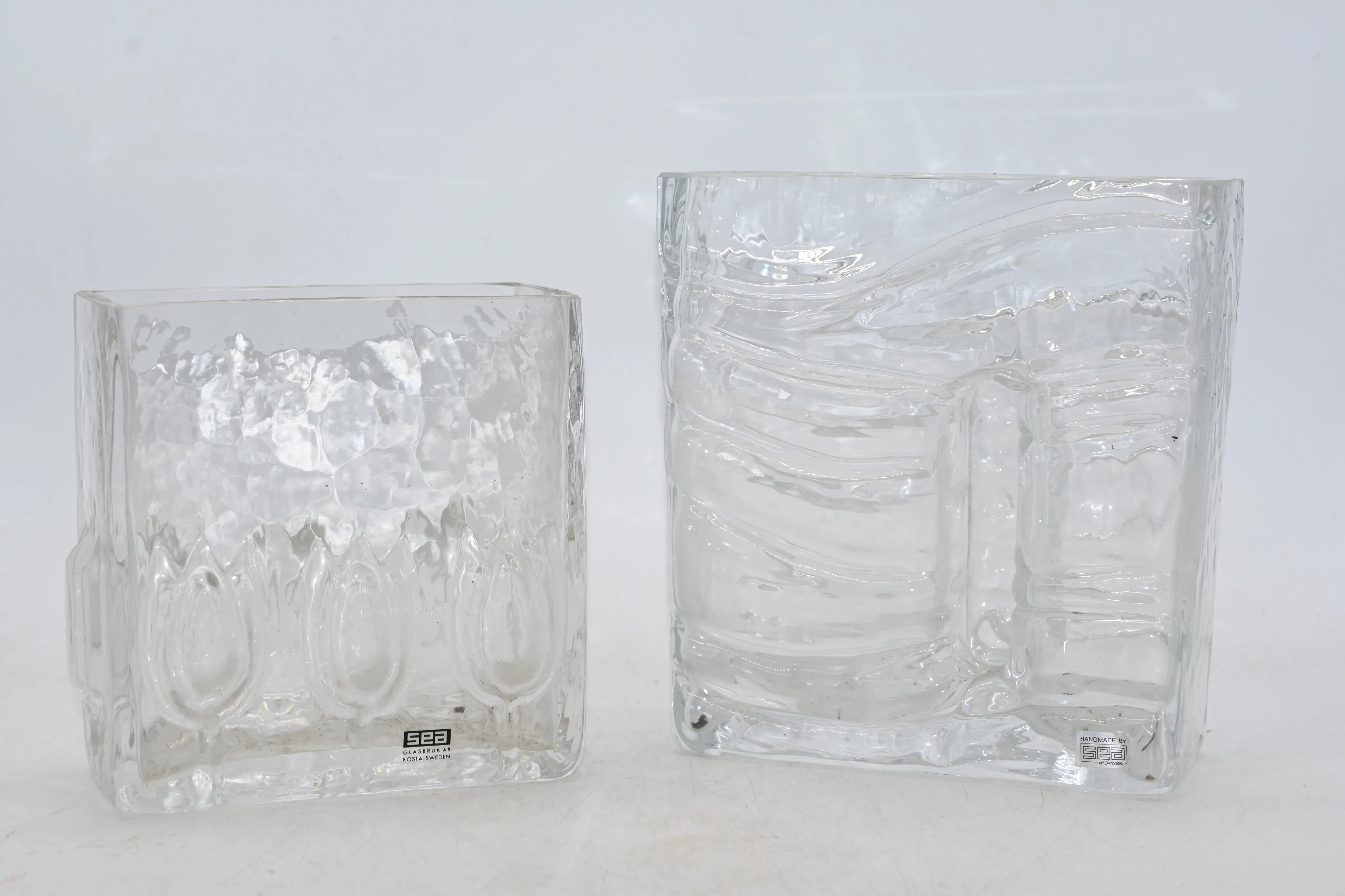 384. Vaser i glas 2st, Sea Glasbruk H.13.5cm H.17cm