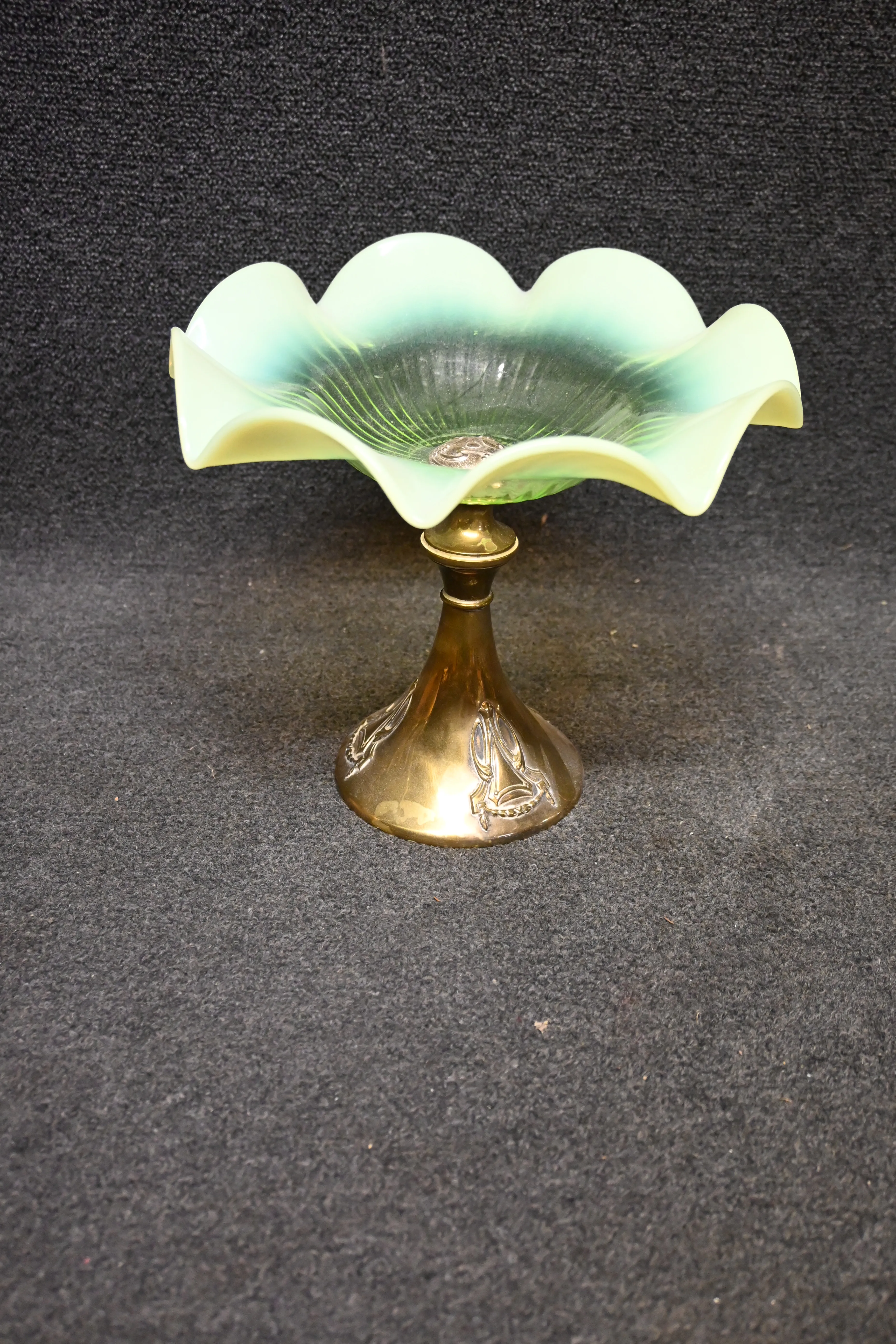 553. Veckad skål på nickelfot 1900-talets första del, D.25cm H.22cm
