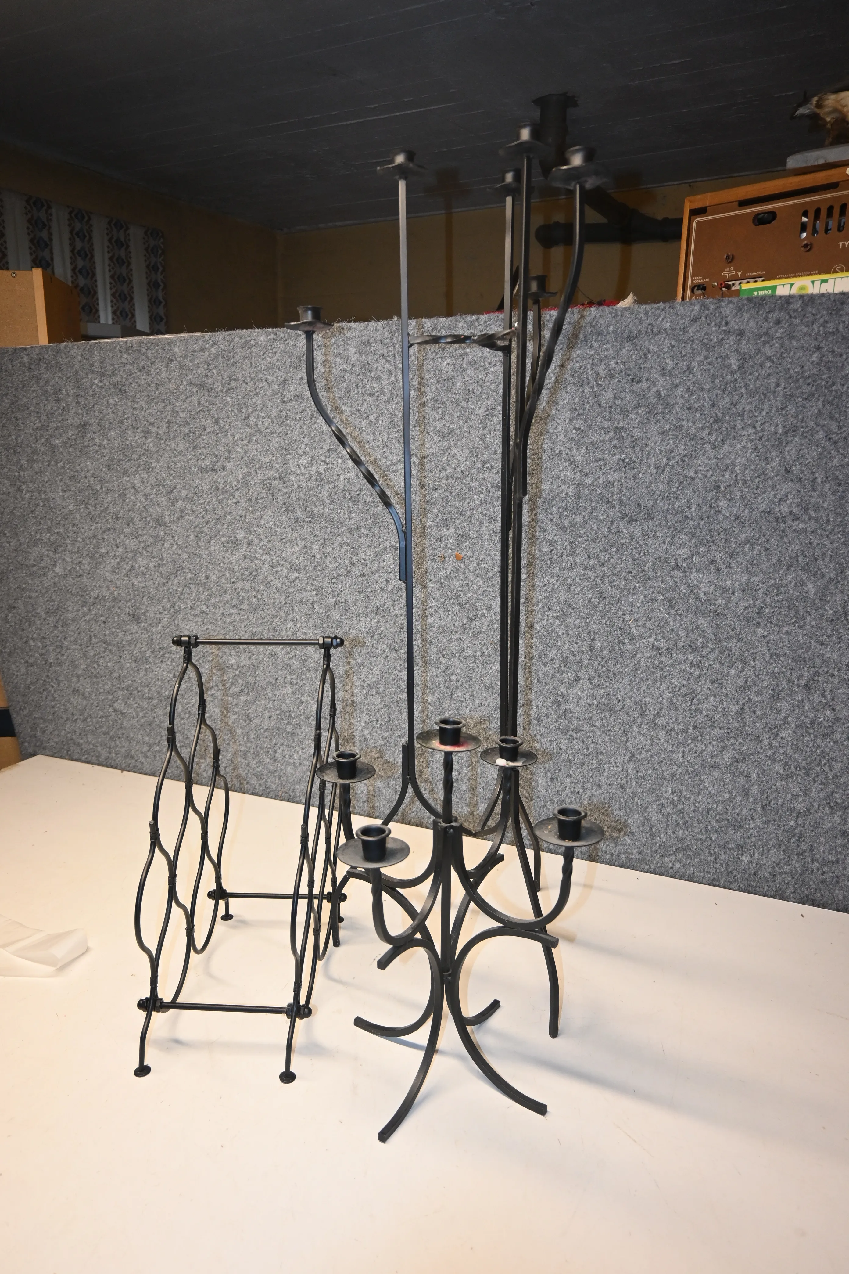 Vinställ 8st flaskor, kandelaber, golvljusstake i smide